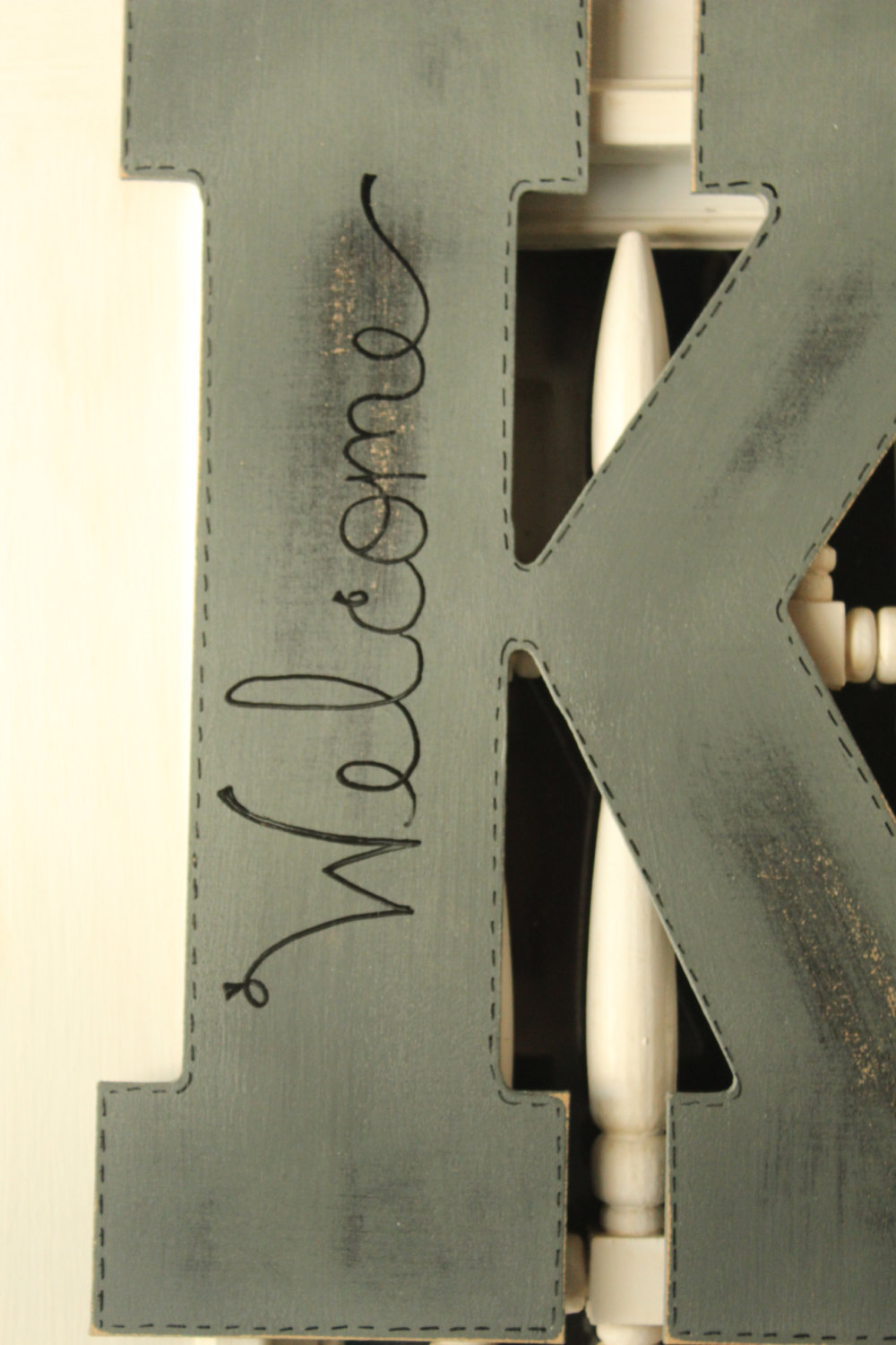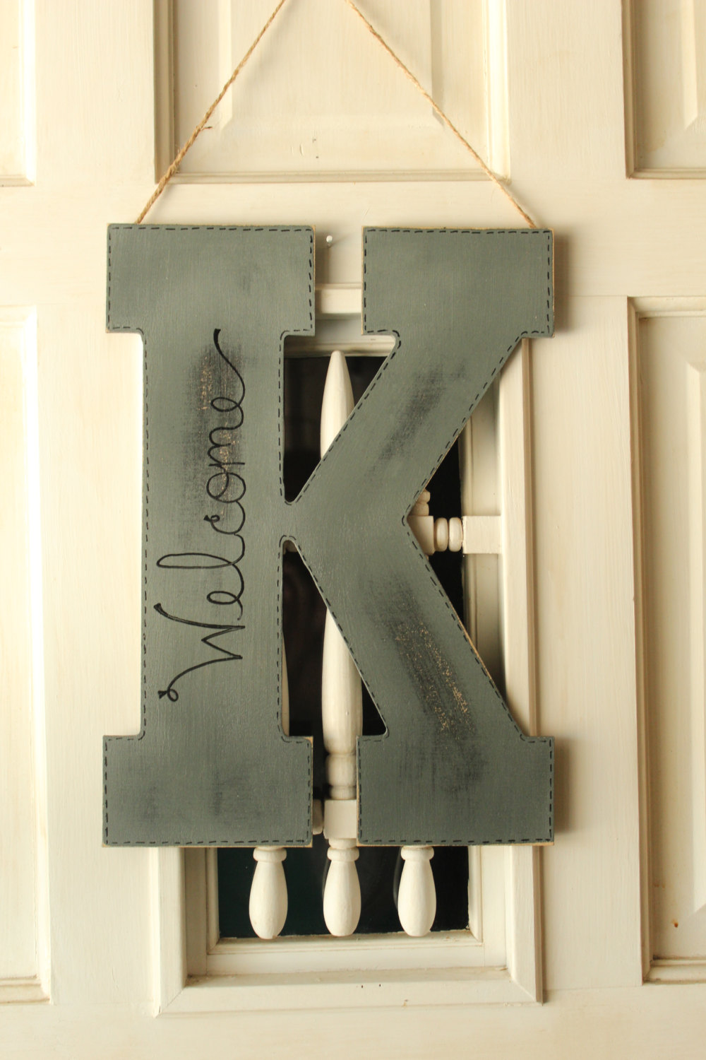 Gray Initial Door Hanger With Chevron Burlap Distressed Door