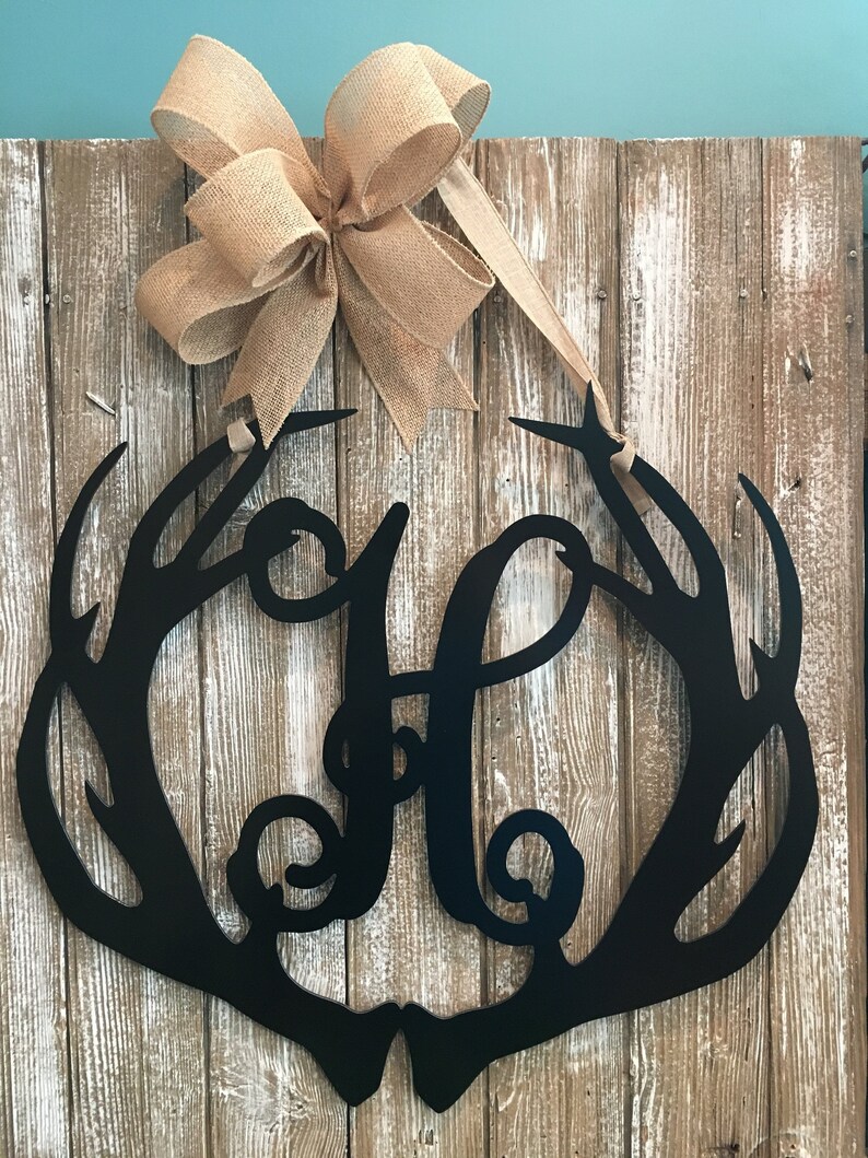 Metal Antler Initial Door Hanger Metal Acm Antler Monogram Etsy