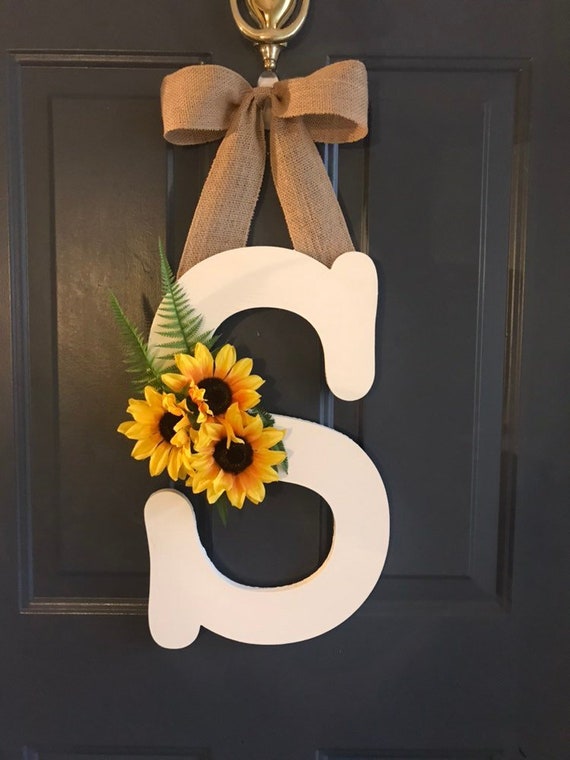 Wood Monogram Initial Door Hanger Sunflower Letter Door Etsy