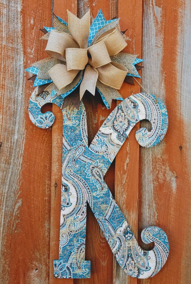 Front Door Letter Initial Door Hanger Large Wood Paisley Etsy