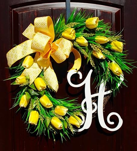 Amazon Com Yellow Tulip Monogram Initial Wreath For Summer Door