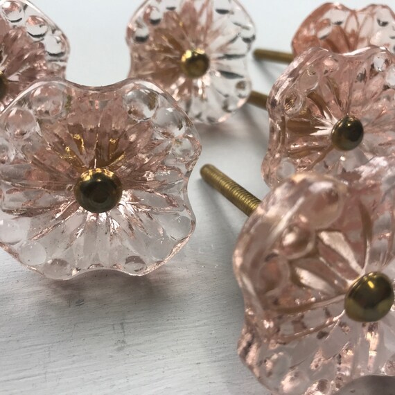 8 X Pink Glass Flower Knobs Home Decor Drawer Pull Bedroom Etsy
