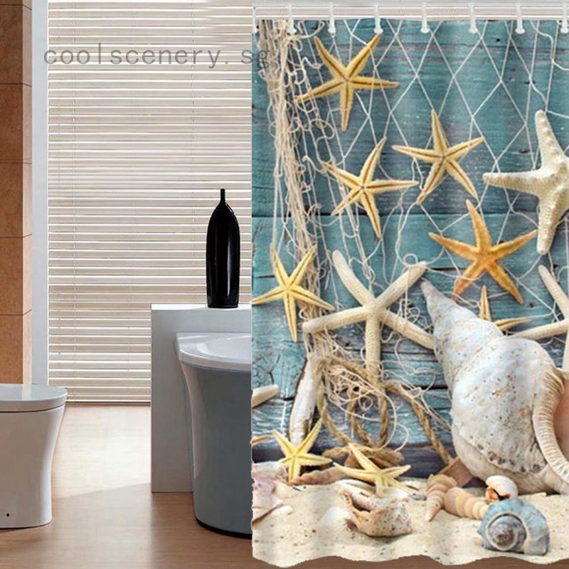 Waterproof Bath Curtains Modern Beach Shells Cartoon Bathroom