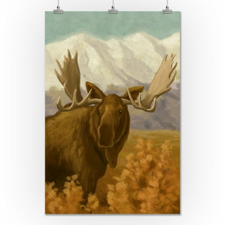 Moose Oil Painting Lantern Press Artwork 24x36 Giclee Gallery