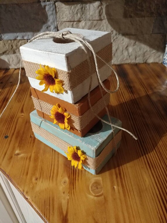 Sunflower Decor Fall Decor Wood Block Candle Holder Reclaimed Etsy