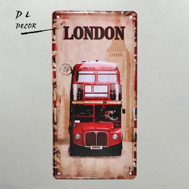 London Classic Red Bus License Plate Metal Sign Wall Decor