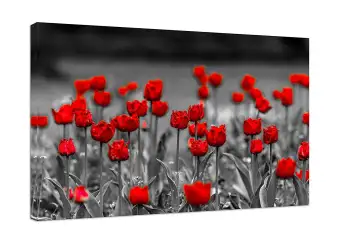 Red Poppy Abstract Flowers Wall Art Painting Canvas Black And
