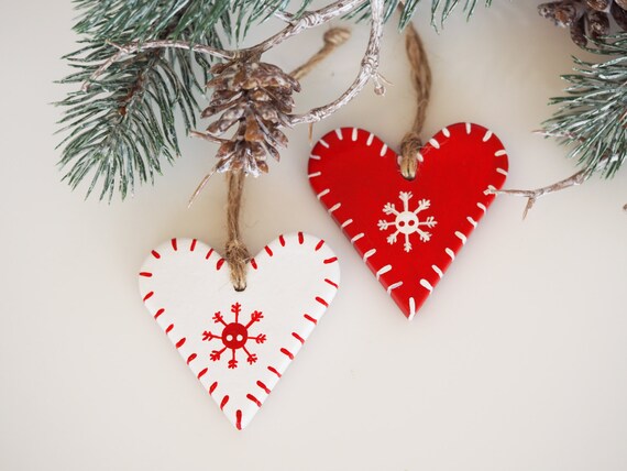 Scandinavian Christmas Decorations Set Of 2 Clay Valentines Etsy