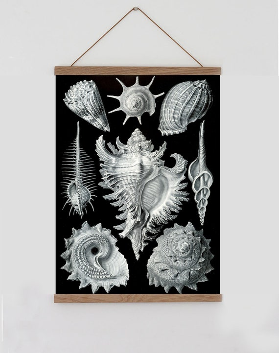 Vintage Print Seashell Wall Hanging Black And White Wall Etsy