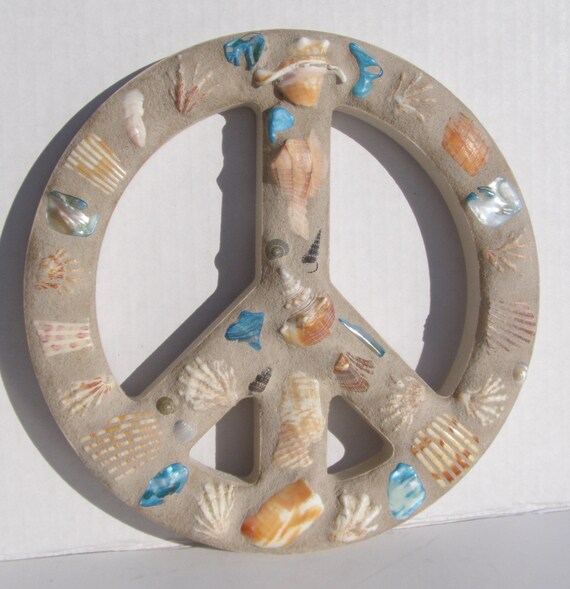 Mosaic Peace Sign Wall Art Seashell Wall Hanging Coastal Etsy