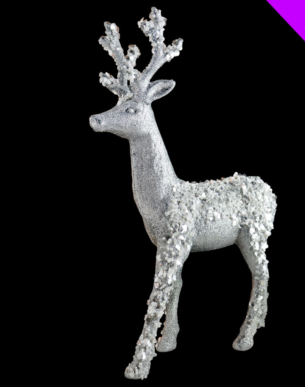 Cheap Silver 3d Glitter Standing Reindeer Christmas Decoration