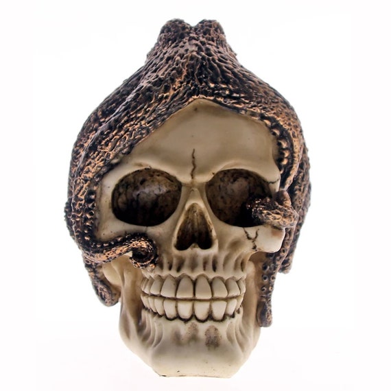 Skull With Bronze Octopus Statue Figurine Gothic Octopus Skull Etsy