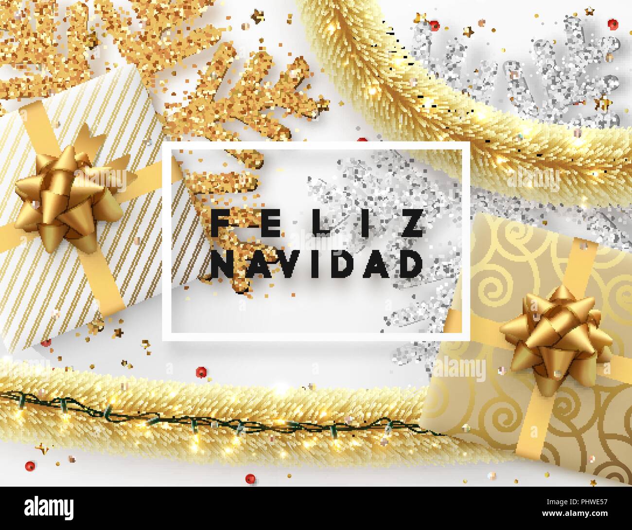 Spanish Text Feliz Navidad Christmas Bright Background With Golden