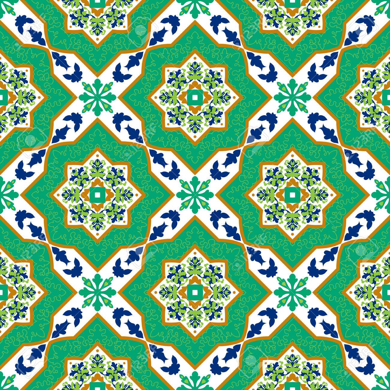 Spanish Classic Ceramic Tiles In Shades Of Green Decorations
