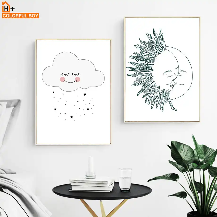 Cartoon Cloud Sun Moon Wall Art Canvas Painting Nordic Posters And