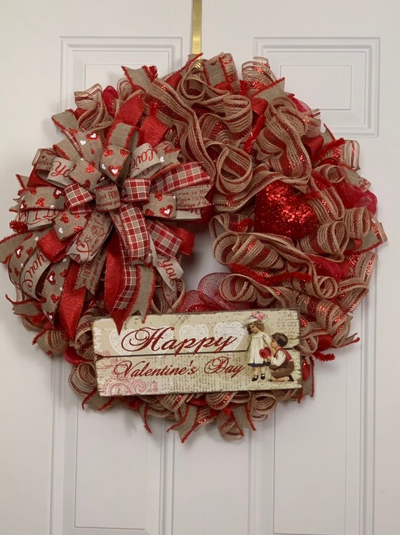 Vintage Valentine Sweetheart Wreath Front Door Wreaths Etsy