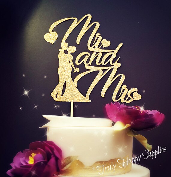 Mr And Mrs Wedding Cake Topper Glitter Cake Decoration Etsy