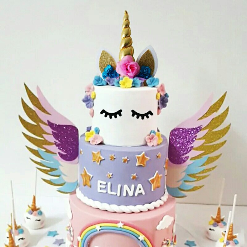 Gold Unicorn Horns Birthday Party Supplies Cake Topper Mariage