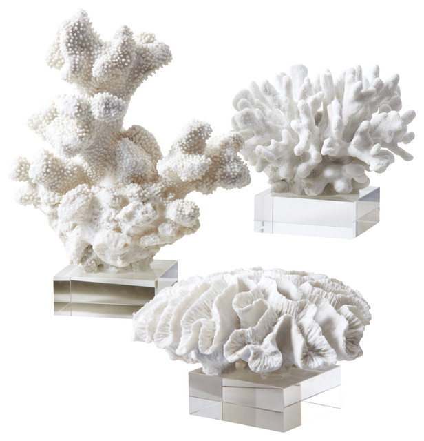 Reef White Coral Sculptures Set Of 3 Beach Style Decorative