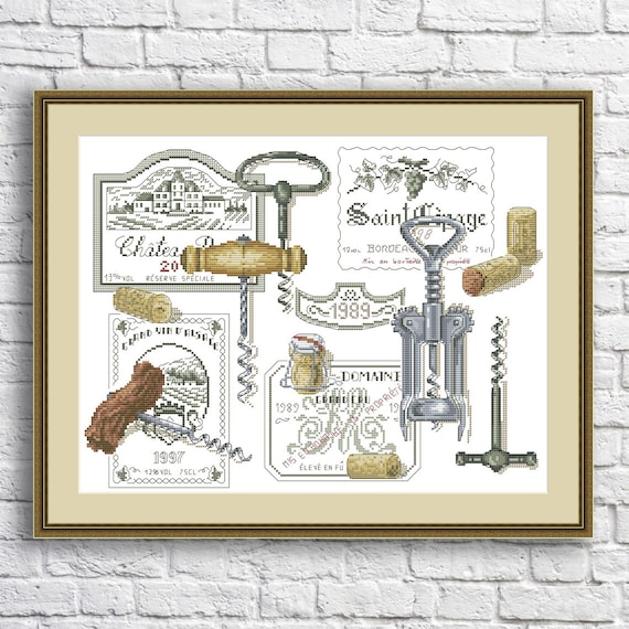 Wine Accessories Cross Stitch Pattern Kitchen Decor Hand Etsy