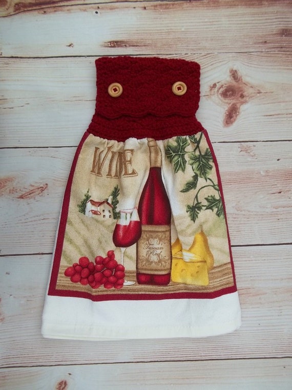 Hanging Kitchen Towel Wine Lover Decor Crochet Top Towel Etsy