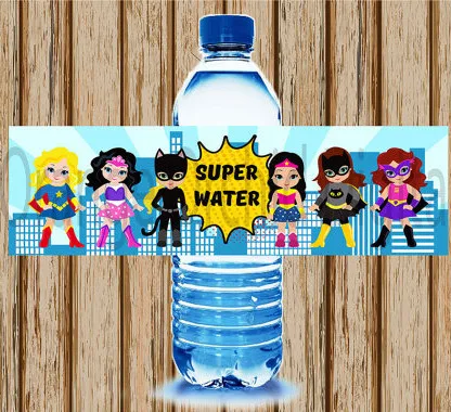 Wonder Woman Bottle Water Labels Super Woman Party Wrappers