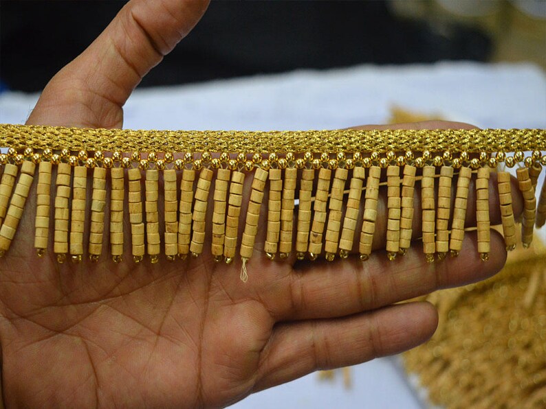 1 5 Wood Beaded Fringes Trim Indian Home Decor Curtain Etsy