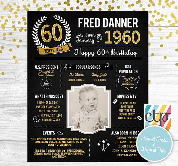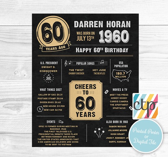 Printed 60th Birthday Poster Back In 1960 What Happened In 1960