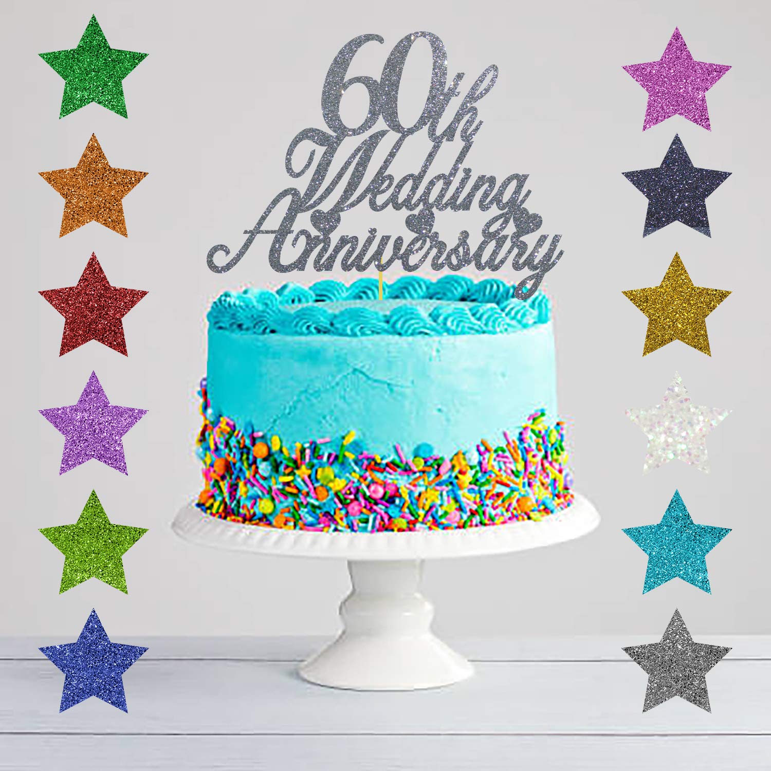 Home Garden 60th Wedding Anniversary Cake Topper Glitter Diamond