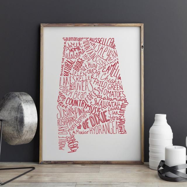 Alabama Wall Art Art Print Alabama Decor Alabama Map Art