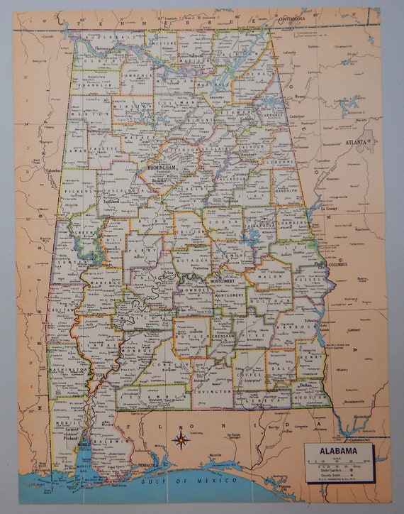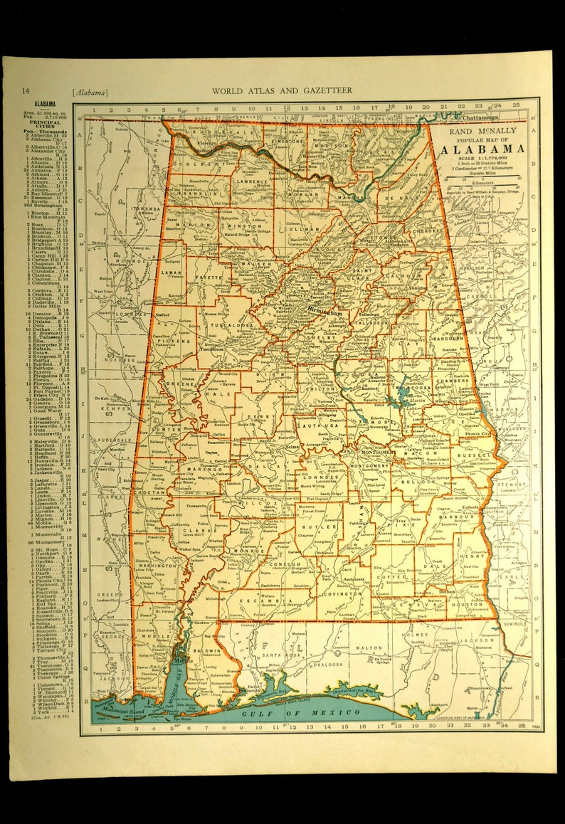 Haus Wohnen Alabama Map Of Alabama Wall Decor Art Vintage 1940s