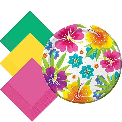 Aloha Party Supplies Hawaiian Luau Tropical Flamingo Tableware