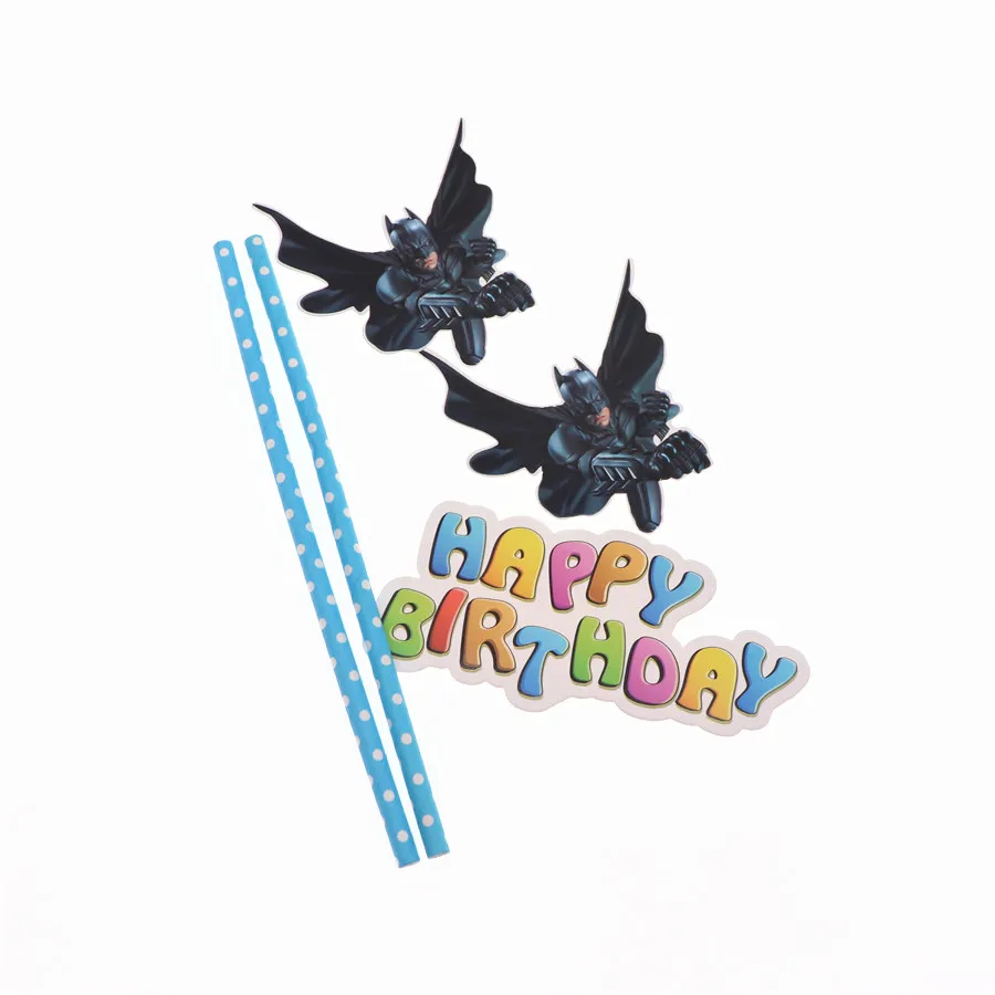 1 Set Batman Baby Shower Cupcake Topper With Paper Straw Birthday