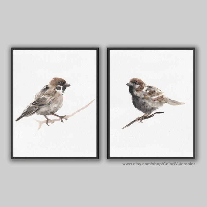 Bird Wall Decor Two Birds Home Decor Birds Illustration Etsy
