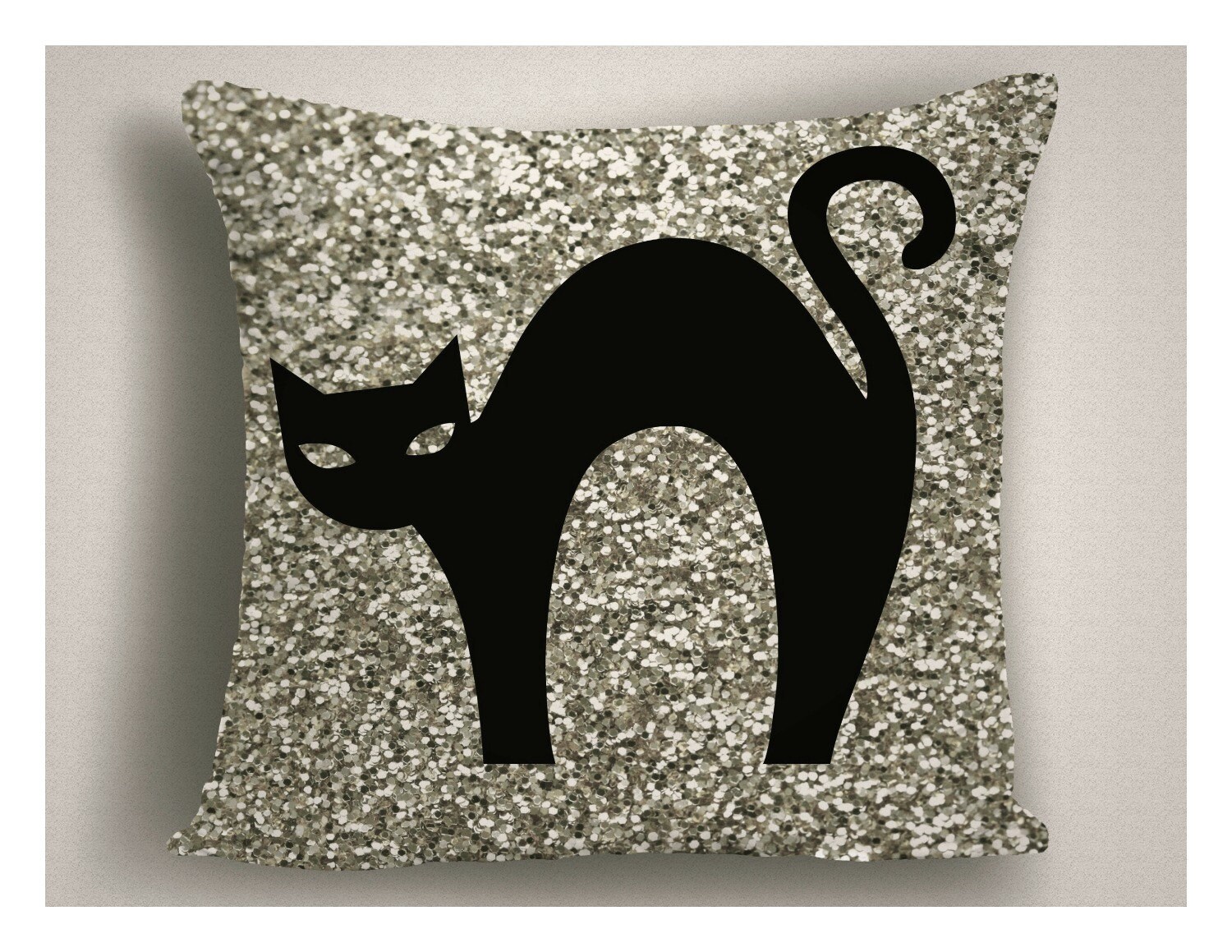 Halloween Pillow With Black Cat And Glitter Halloween Pillow