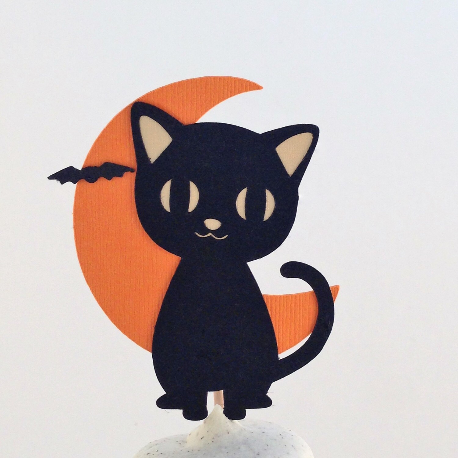Black Cat Halloween Cupcake Topper Black Cat Cupcake Topper Etsy
