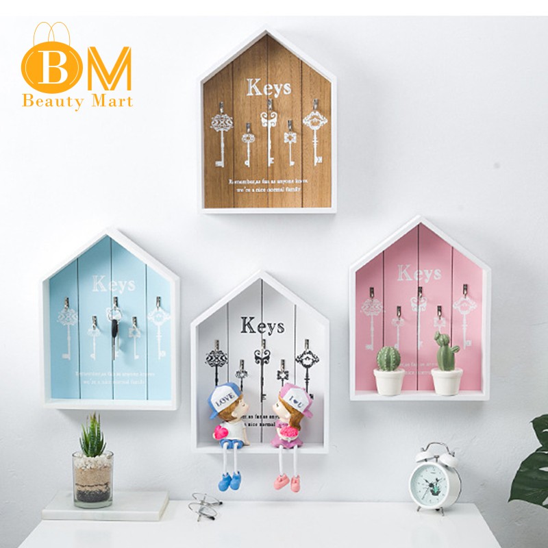 Ready Stock Creative Home Wall Decor Wooden Key Hook Storage