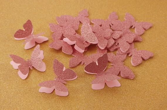 20 Glitter Paper Butterflies Rose Gold Butterfly Decoration Etsy