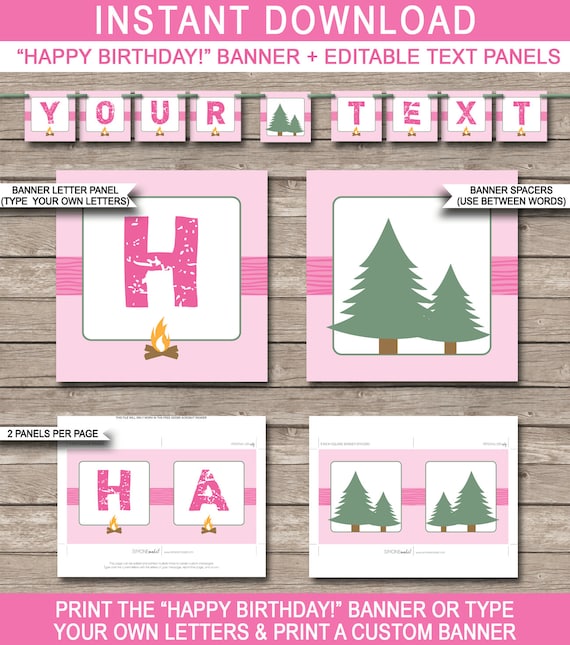 Girls Camping Party Banner Happy Birthday Banner Custom Banner