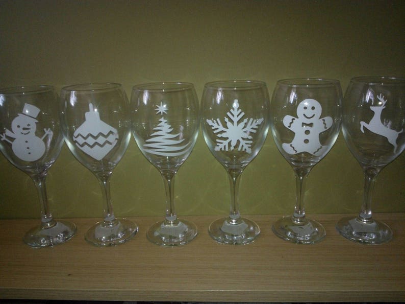 6 X Christmas Vinyl Decal Stickers Glitter Wine Glass Diy Etsy