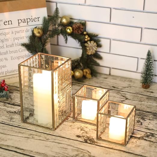 Amazon Com Set Of 3 Copper Frame With Texture Glass Hurricane