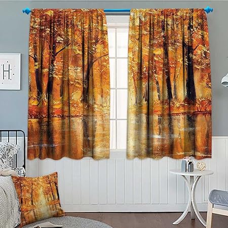 Country Decor Blackout Window Curtain Painting Of A Forest By The