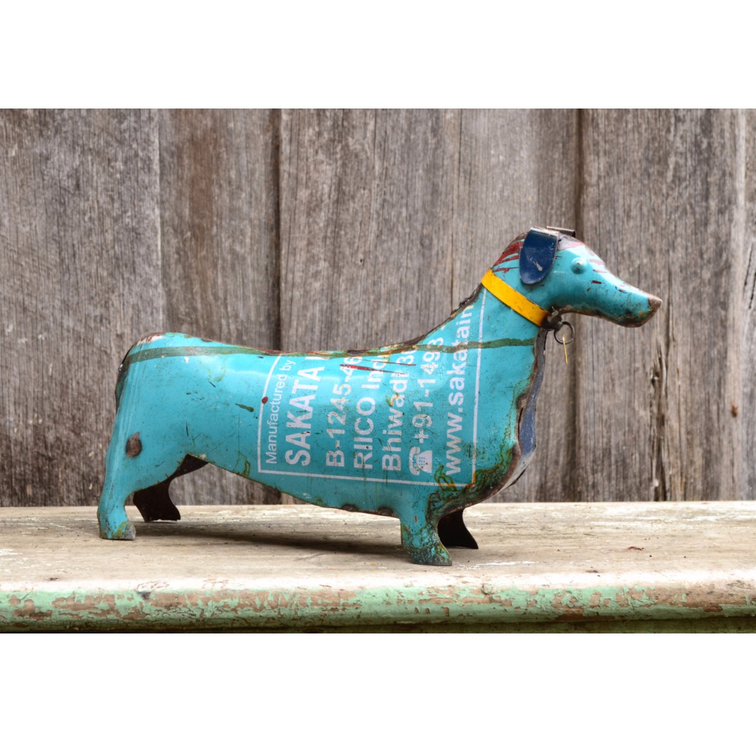 Reclaimed Metal Industrial Handmade Dachshund Dog Statue Home