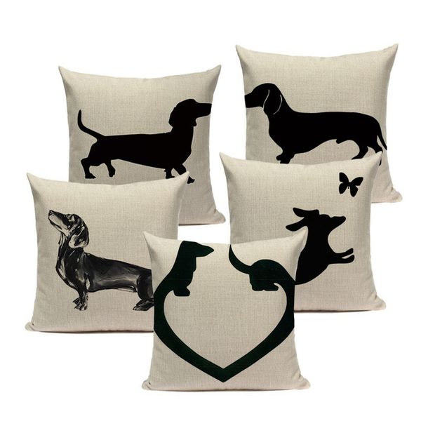 45x45cm Dachshund Dog Cushion Cover Animal Linen Pillow Case Sofa