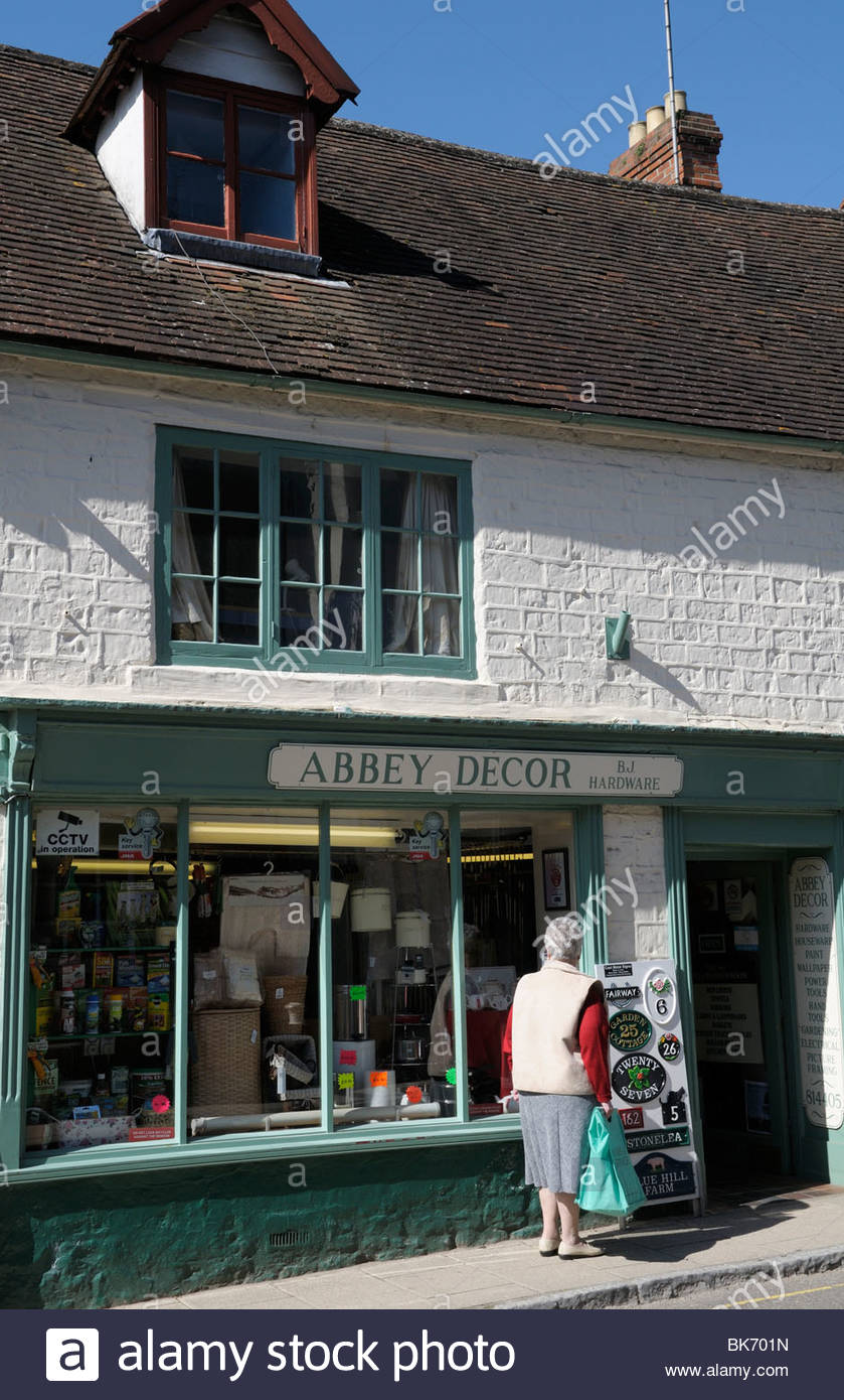 Front On View Of A Shopper Outside Of Abbey Decor Hardware Shop In