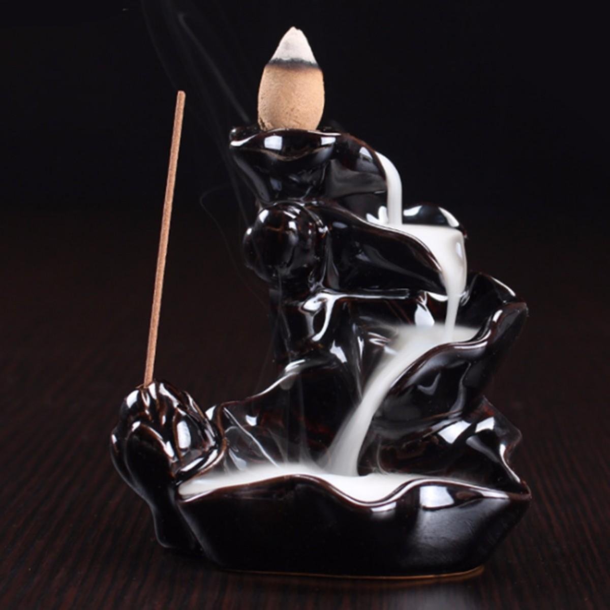 Backflow Incense Cone Burner Holder Ceramic Lotus Stream Fragrant