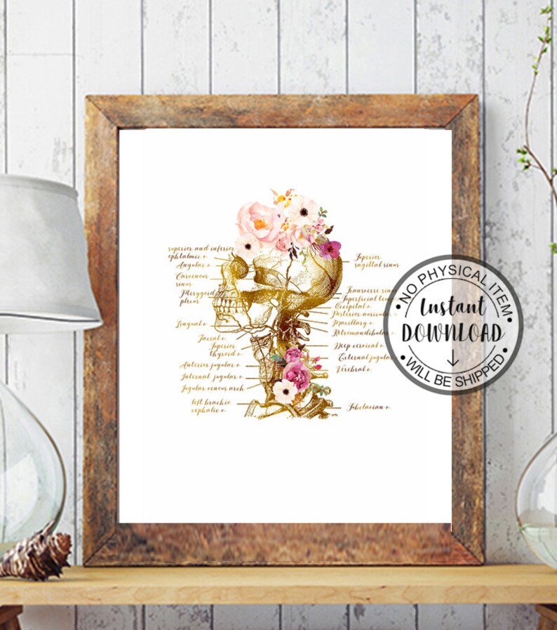 Veins Of Head Floral Anatomy Art Skull Print Medical Etsy