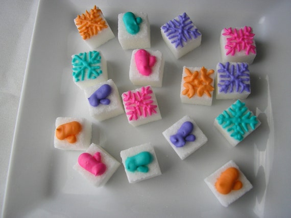 28 Pcs Decorated Sugar Cubes Mitten And Snowflakes Christmas Etsy