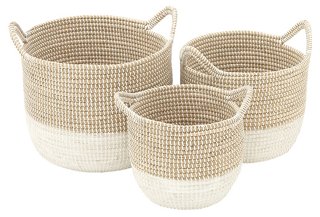Asst Of 3 Ella Decorative Baskets Natural White One Kings Lane