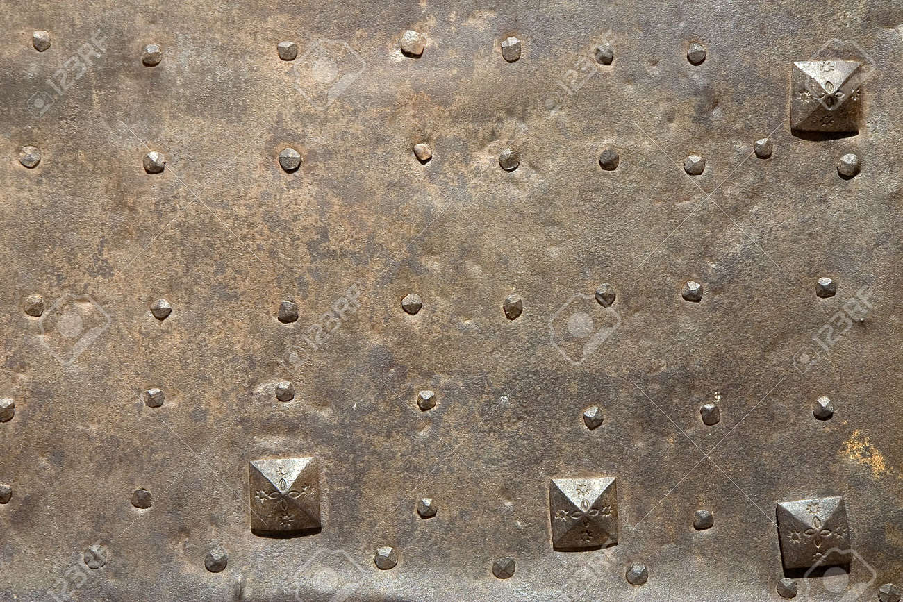 A Metal Door Detail With Decorative Nails Stock Photo Picture And